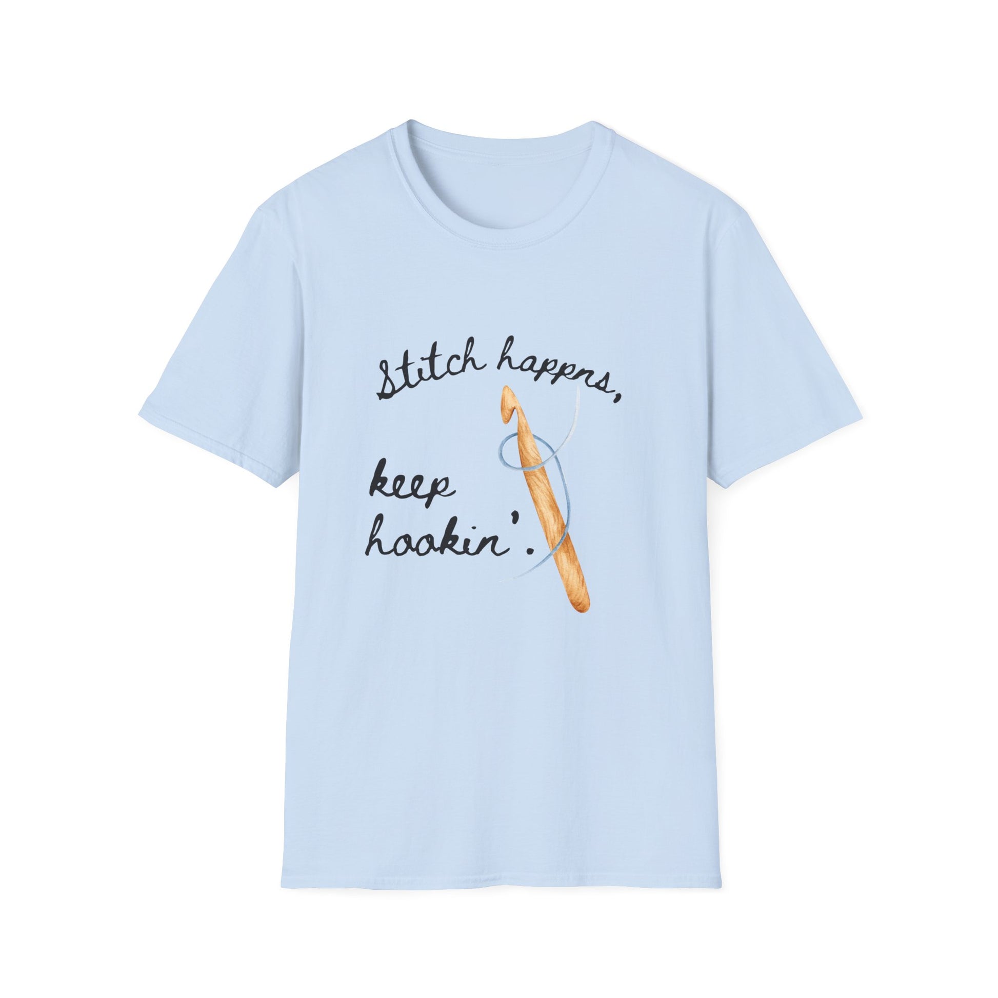 Crochet Tee — “Stitch Happens, Keep Hookin’” Crochet Lover T‑Shirt